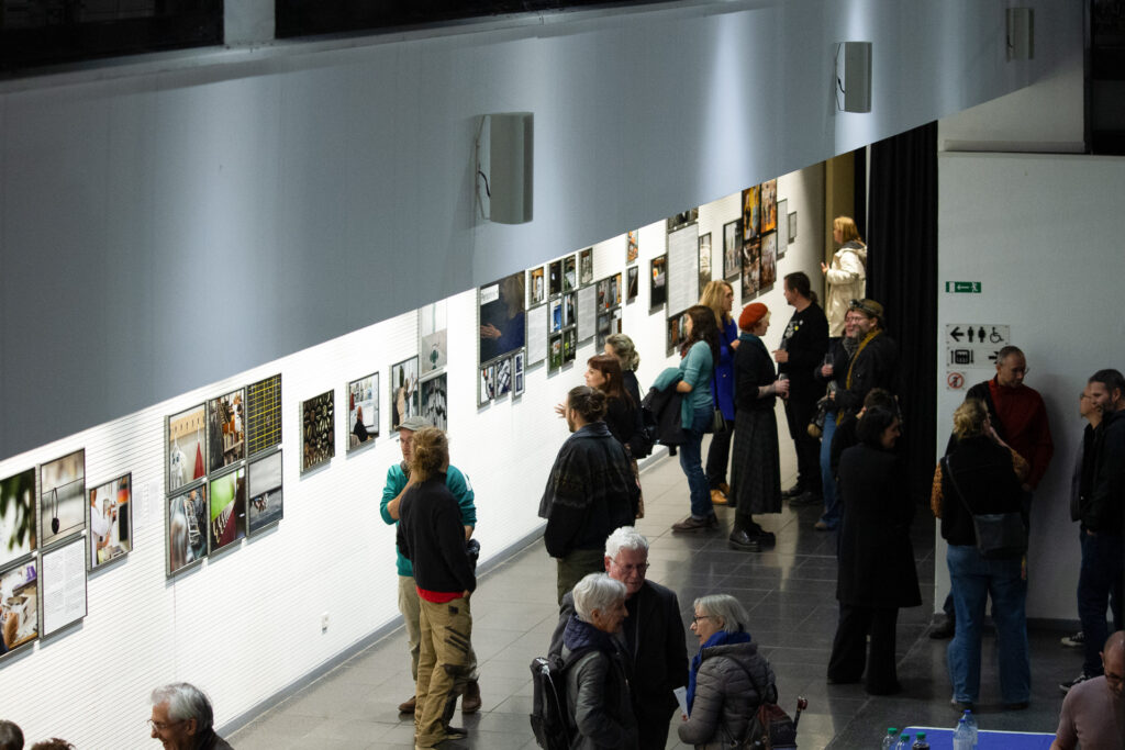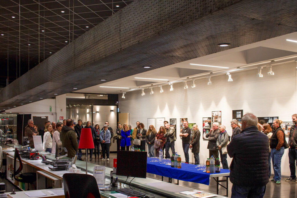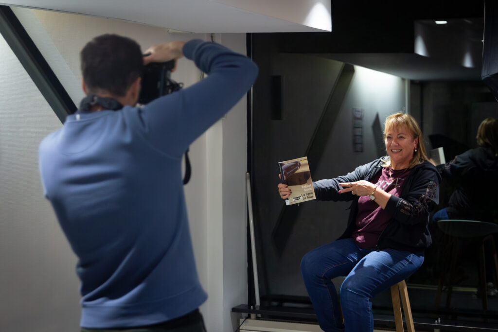 Vendredi 24 octobre avait lieu le vernissage en présence de l’artiste. L’association Résigraphies était présente pour couvrir l’événement en images et pour proposer un studio photo aux visiteurs. Chaque personne était invitée à chercher dans la bibliothèque un ouvrage qui lui corresponde, la représente, la touche puis à venir s’installer sous les projecteurs du studio !